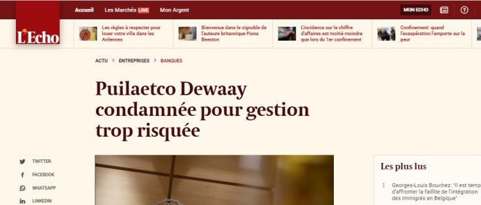 Un grand moment d’anticapitalisme (ironie, hein) : sachez d’abord que Puilaetco avait été condamnée pour « gestion trop risquée » en 2016, soit durant le mandat de Thierry Smets – voilà qui a dû mettre en confiance le CA de NewB. Son activité principale est ainsi la gestion de patrimoine sans oublier les investissements en art, le genre de publics que vise NewB (ironie, encore…ou pas).